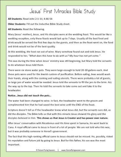 Use this 16 page First Miracles of Jesus Bible Study Pack to enhance any Home, Sunday School, or Childrenโs Church Bible lesson. Get ready to engage in great discussion!